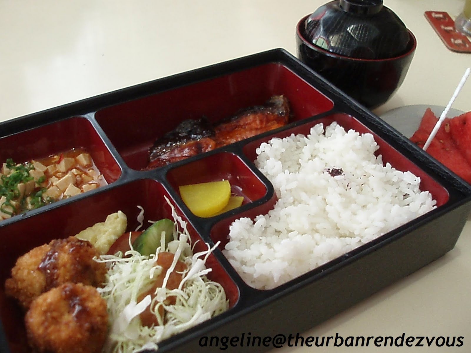 The Bento is accompanied by Miso Soup and two slices of Watermelon for desserts..and all this only costs RM16.90..